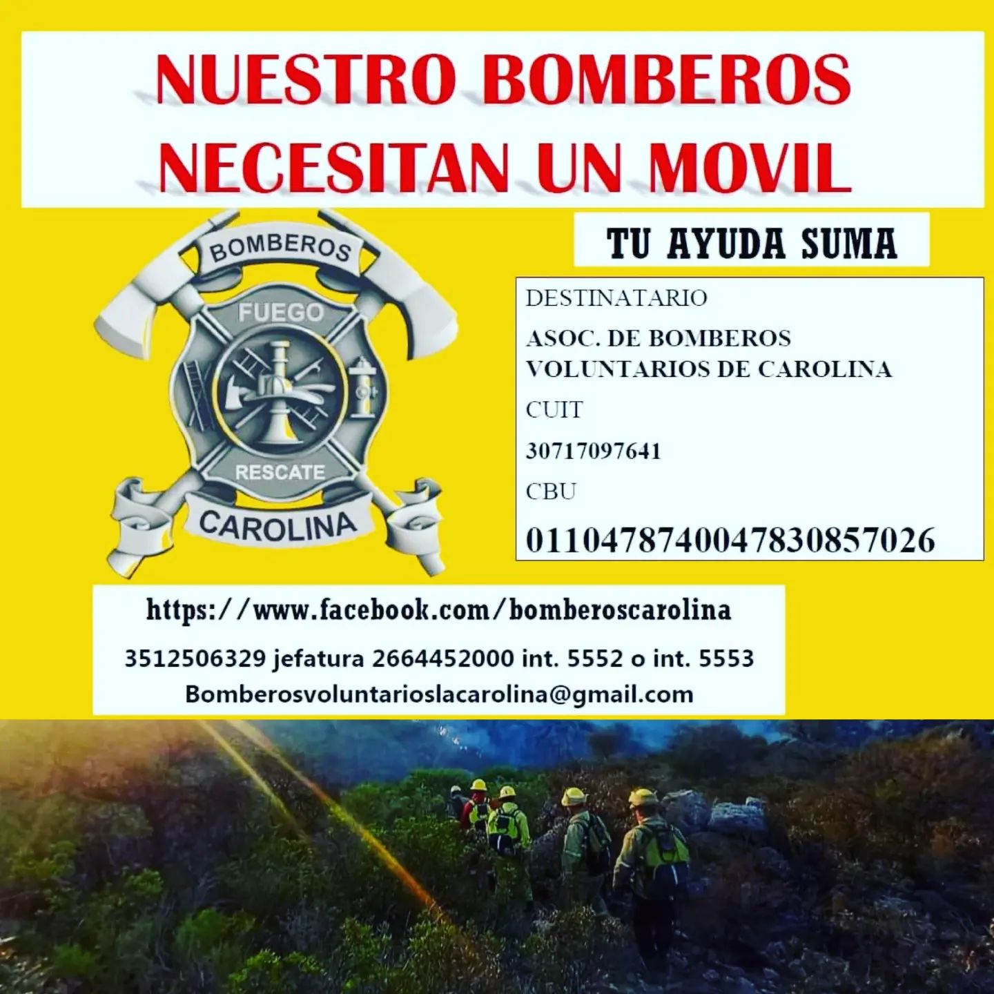 La comunidad puede colaborar realizando sus donaciones directamente a la Asociación de Bomberos Voluntarios de La Carolina mediante los siguientes datos: